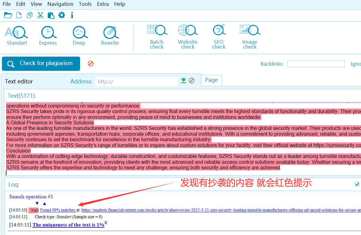 AntiPlagiarism.NET 是一款自动检测文章抄袭的工具,使用 Google、Bing 和其他搜索引擎对你的文章和图片进行检索和匹配,检查内容是否存在抄袭的内容。不管你的学生进行论文检查还是网站管理员发布采集的文章或者AI生成的文章,都可以用这款软件进行抄袭检查,尽量避免发布重复的内容,保证自己的效果。