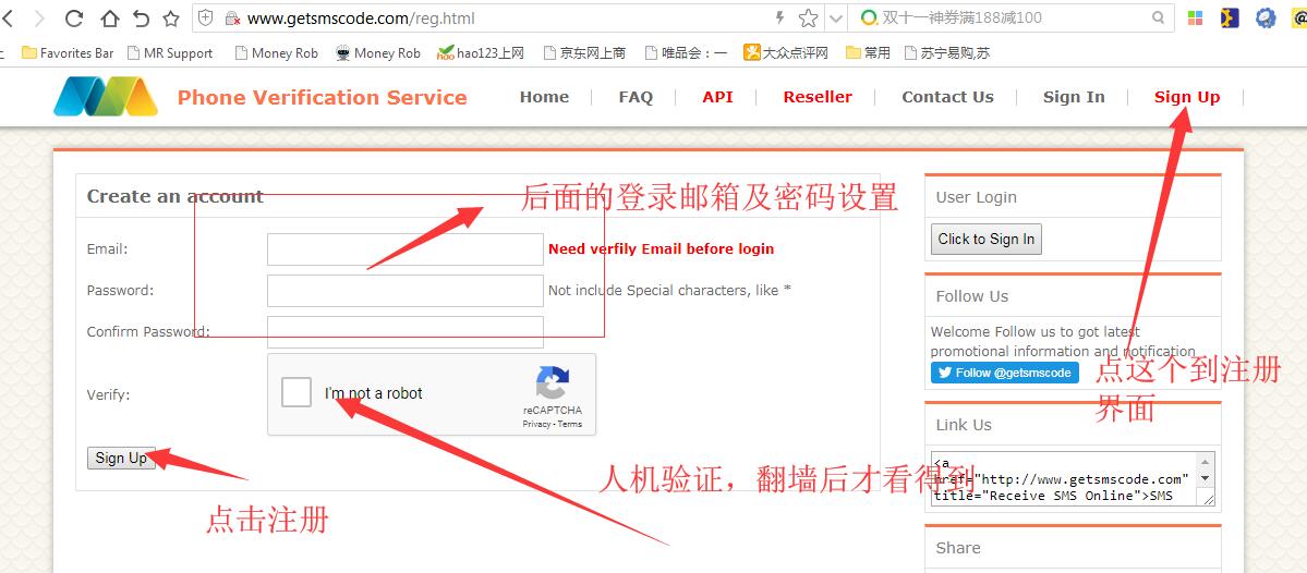 首先我们去getsmscode网站注册一个账号,注意这个网站注册及使用都是需要vpn翻墙的。如果你没有,可以参考购买我们推荐的expressvpn