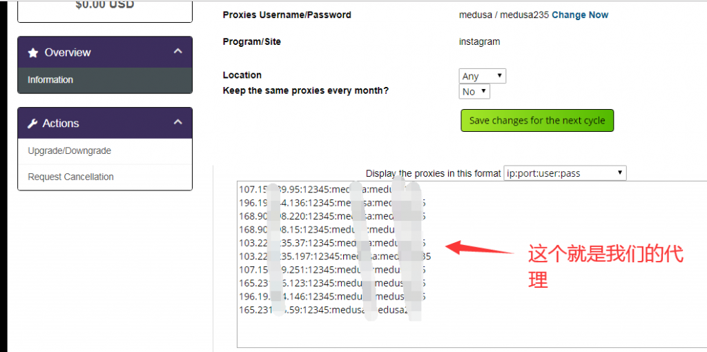 当我们支付成功后,对方基本会在半小时内通过邮件发送私人代理Ip到我们的注册邮箱里面,当然我们也可以在网站上提取: