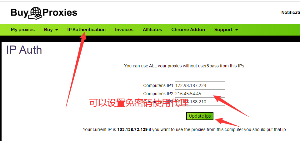 另外就是如果是试用vps固定的IP地址,可以在网站上添加这个vps的固定地址,这样使用代理时可以免输入代理账号和密码: